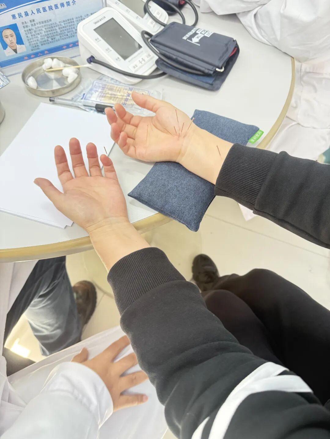 诊室内,赵烨教授指尖轻触患者腕脉,目光专注。他仔细询问每位居民身体状况,观舌苔、察气色,辨证施治。首日坐诊,他接诊40余位居民,为多位慢性病患者建立专属健康档案,并开具个体化中医处方。此外,中医适宜技术应用展现独特魅力,赵教授为19位患者施行针灸治疗,有效缓解其疼痛与不适。